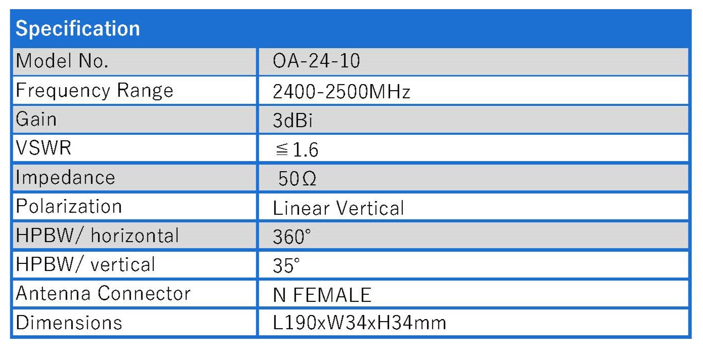 Model:2.4-2.5GHz OMNI 3dBi FOR N FEMALE