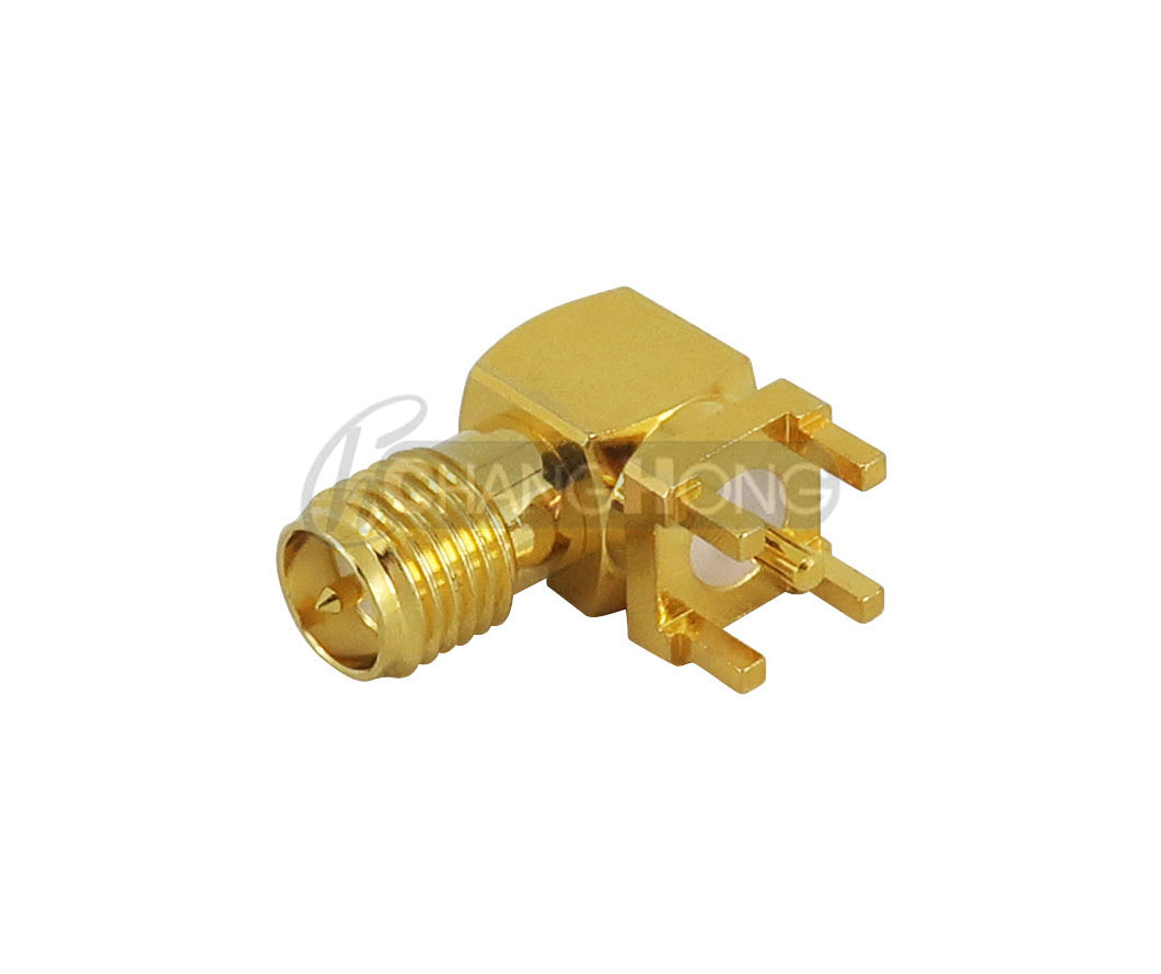 SMA JACK BKD R/A FOR PCB (center high 6.45mm) (thread long 19mm)